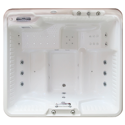 Минибассейн "МИШЕЛЬ" (перламутр), 2050х1550, рама-подставка, панели — декоративная террасная доска, 21 гидромассажная форсунка, 2 подголовника