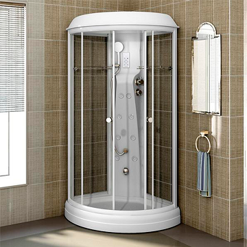Душевая кабина «БЕАТА», поддон на раме-подставке с устройством слива, боковые стенки (стеклянные), центральная стойка, стеклянные шторки (матовые), смеситель