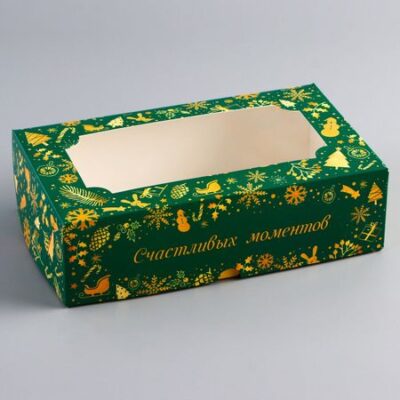 Коробка складная с окном «Счастливых моментов» , 25×15×7 см. <strong> Новогодняя складная коробка с окном размером 25 х 15 х 7 см<