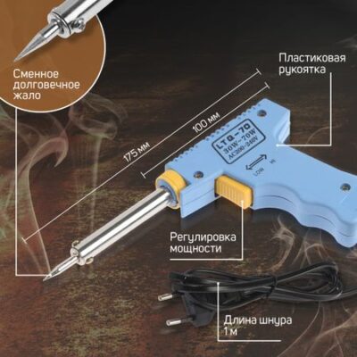 Паяльник-пистолет с регулировкой мощности ТУНДРА, 30-70 Вт, 220 В. Паяльник-пистолет ТУНДРА предназначен для работ, связанных с точечным нагревом.