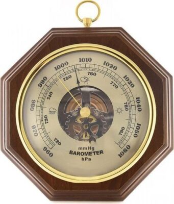 Механический барометр БРИГ БМ92101-1-В дополнительно оснащен шкалой жидкостного термометра. Устройство характеризуется приятным внешним видом и благородным