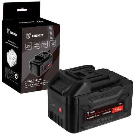 Аккумулятор DEKO R-UNV6.0 ULTRA, Li-ion, 20В, 6.0А*ч, с повышенной токоотдачей 083-1019Основные характеристики: Тип: аккумуляторТип аккумулятора: Li-IonУстройство аккумулятора: слайдерЕмкость аккумулятора: 6000 мАчНапряжение: 20 ВТокоотдача: 10СЗарядное устройство в комплекте: нетИндикация разряда батареи: даЗащита от перегрева АКБ: нетКомплект поставки:АКБ — 1 штПаспорт изделия — 1 штКоробка — 1 шт