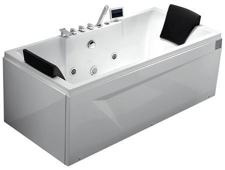 Размеры: 72х175х85 см. В комплекте каркас, смеситель с изливом, душевая лейка, слив-перелив и съемная панель. Есть защита от сухого пуска, регулировка интенсивности массажа, хромотерапия, гидромассаж, аэромассаж и озонирование.