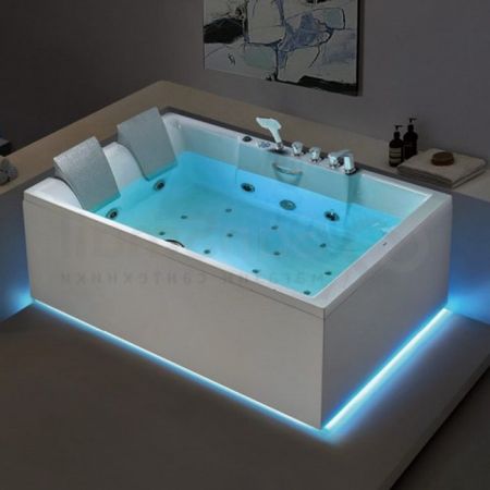 Цвет белый. Прямоугольная угловая двухместная ванна L/R. 100% акрил 5 мм, армированный фиброволокном и дополнительной полировкой внутренней чаши. панель управления H168НВBT. Сенсорный LED экран, ПДУ, радио, МР3, bluetooth. ГИДРОМАССАЖ — форсунки: 8 больших боковых. АЭРОМАССАЖ — 14 форсунок. Подогрев воды с термостатом. Озонация. Усиленный каркас из нерж.стали. Слив/перелив из латуни, каскадный налив воды. Высококачественный латунный смеситель с керамическими картриджами. Душевая лейка. Датчик уровня воды. Защита от протечек. Система очистки. LED подсветка снаружи снизу. Подводная LED подсветка. 2 ручки из нерж.стали. Подголовники из ППУ. ДОПОЛНИТЕЛЬНЫЕ КОМПЛЕКТАЦИИ: экран с трех сторон. Замена белого акрила на цветной.