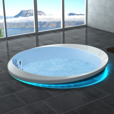Цвет белый. Круглая встраиваемая ванна. 100% акрил 5 мм, армированный фиброволокном и дополнительной полировкой внутренней чаши. Панель управления H168НВBT. Сенсорный LED экран, ПДУ, радио, МР3, bluetooth. ГИДРОМАССАЖ — форсунки: 15 больших боковых. ПУЗЫРЬКОВЫЙ АЭРОМАССАЖ (шампанское)- 14 форсунок с LED подсветкой. Подогрев воды с термостатом. Озонация. Слив/перелив из латуни, каскадный налив воды. Высококачественный латунный смеситель с керамическими картриджами. Душевая лейка. Датчик уровня воды. Защита от протечек. Система очистки. LED подсветка снаружи по кругу.