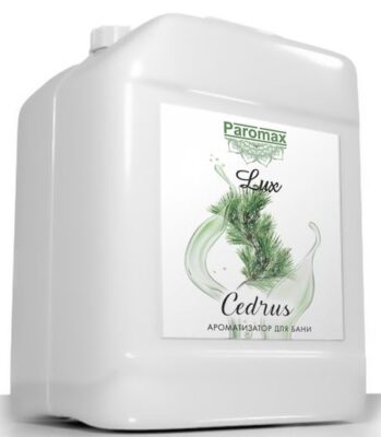 Ароматизатор Паромакс Кедр «Люкс» 5 литров содержит натуральное эфирное масло кедра. Смолистый аромат эфирного масла кедра напоминает о свежести леса и придает благородную уверенность, а также идеально подходит для бани и сауны. Пар с кедровым маслом оказывает противовоспалительное, обезболивающее и мочегонное действие, улучшает кровообращение и повышает работоспособность.