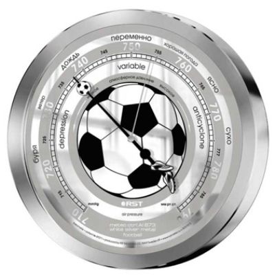 Атмосферный барометр RST 07873 Футбольный мяч является новой настенной погодной станцией элитного класса серии Meteo Ctrl Stainless steel. В основе данной модели — собранный вручную высокоточный механизм барометра-анероида серии 3.7, прошедший проверку на каждом этапе сборки и тщательно откалиброванный специалистами фабрики. На циферблате предусмотрены русские буквы.