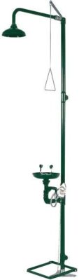 Аварийный душ с раковиной для промывки глаз из нержавеющей стали предназначена для заводов, фабрик, лабораторий, где есть риск нанесения здоровья рабочему персоналу от огня, кислот, и прочих химических или радиоактивных реагентов. Приводится в действие с помощью треугольного рычага или напольной педали.