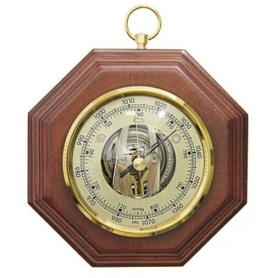 Барометр-скелетон БРИГ БМ91111-М представляет собой прибор для измерения давления, облаченный в надежный, дорогой корпус интересной формы. Циферблат модели имеет понятные погодные обозначения и очень красивые дополнительные элементы, а цветовое решение прекрасно сочетается с древесной фактурой.