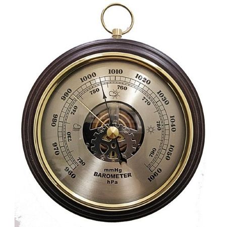 Барометр БРИГ БМ91121-1-В это отличный бытовой прибор в корпусе круглой формы, предназначенный для определения атмосферного давления. Высокоточный и надежный механизм помещен в деревянный корпус благородного цвета, который является защитой от внешних повреждений. Для удобства настенного монтажа прибор оснащен латунным подвесом.