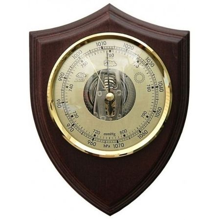 Классический механический барометр БРИГ БМ91172-2-В изготовлен из массива бука в форме герба размеры 142 на 190 мм. Механизм представляет собой надежную конструкцию со шкалой измерения давления 720 — 800 мм.рт.ст. (960-1070 гПа). Производится прибор в Санкт-Петербурге, гарантия на продукцию 12 месяцев.