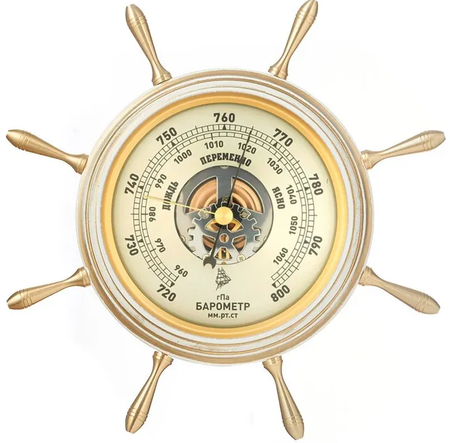 БРИГ БМ91225-1-ЭП это барометр безжидкостного типа, выполненный в деревянном корпусе из массива бука. Расцветка слоновой кости в сочетании с изящной формой в виде штурвала делает данный измерительный прибор ярким и стильным украшением интерьера. Барометр быстро и легко устанавливается на стену.