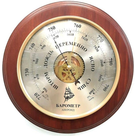 БРИГ БМ91420-М это механический безжидкостный барометр, при помощи которого можно отслеживать уровень атмосферного давления в вашем доме. Круглый корпус барометра сделан из массива бука в расцветке Махагони, то есть красное дерево. Диаметр корпуса составляет 240 мм, а диметр самой шкалы 180 мм.