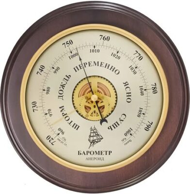 Барометр в классическом стиле БРИГ БМ91420-В выполнен в корпусе из массива дерева с механизмом в центре. Для обрамления циферблата используется латунная вставка, что придает изделию завершенности во внешнем виде. Настенный метеоприбор станет как отличным подарком, так и лучшим дополнением интерьера для тех, кто привык следить за погодой.