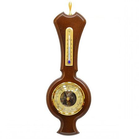 Барометр БРИГ БМ92101-1-М это небольшая метеостанция от отечественного производителя, позволяющая определять показатели атмосферного давления и температуру воздуха в помещении. Рассматриваемое изделие выполнено в корпусе из натурального дерева и покрыто лакокрасочным покрытием благородного цвета. Механизмы устройства характеризуются надежностью и долговечностью.