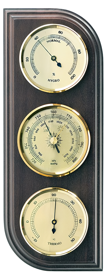 Бриг БМ93003-2-В облачен в стильный прямоугольный корпус с фигурными углами, который без труда крепится к стене. Прибор состоит из барометра, гигрометра и термометра. Компактное устройство предназначено для измерения показателей относительной влажности и температуры воздуха, а также для определения текущего атмосферного давления.