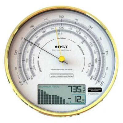 Серия барометров от шведской компании RST отличается наличием высокоточных цифровых датчиков давления, данные которых электронно-механическим методом передаются на классический круглый циферблат со стрелкой. Шкала прибора имеет разрешение 0,2 миллиметрртутного столба. Данные этих барометров выводятся одновременно и на механическом циферблате, и на жидкокристаллическом дисплее.
