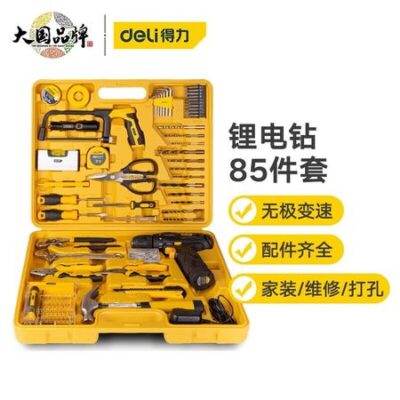 Беспроводная ручная дрель Deli, литиевая электрическая дрель, отвертка, набор инструментов для дома, набор из 85 предметов DL1085L