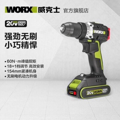 Бесщеточная электрическая ручная дрель Vickers 20 В WU182 (2,0 двойная электрическая) пистолетная дрель с литиевой батареей, многофункциональный сверлильный электроинструмент WORX
