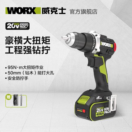 Бесщеточная электрическая ручная дрель Vickers 20 В WU193 (4,0 с одной батареей), пистолетная дрель с литиевой батареей, электроинструмент для перфорации стен WORX