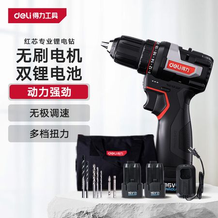 Бесщеточная литиевая электрическая дрель Deli Red Core серии 16 В, перезаряжаемая ручная дрель, электрическая отвертка со сверлом, двойная электрическая