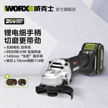 Бесщеточная литиевая угловая шлифовальная машина Vickers 20 В WU806 (4,0, быстрая зарядка одной батареи), ручная шлифовальная машина для резки и шлифования, перезаряжаемый инструмент WORX