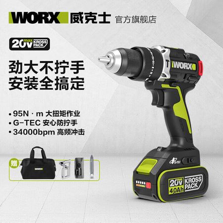 Бесщеточная ударная дрель Vickers 20 В WU373 (двойная электрическая) ручная дрель с литиевой батареей, пистолетная дрель, отверстие в стене, бетон WORX