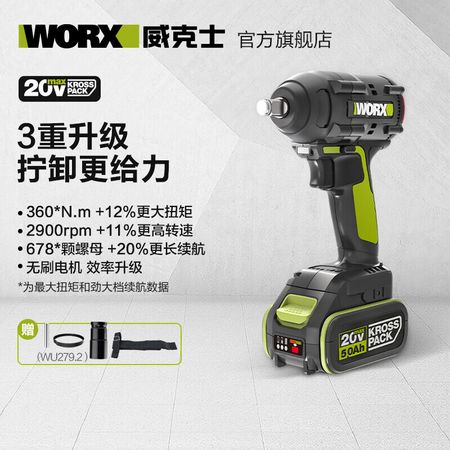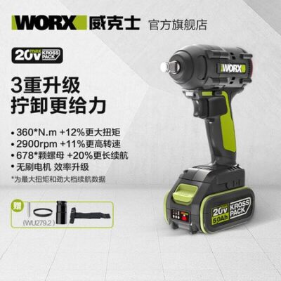 Бесщеточный электрический гаечный ключ Vickers 20 В WU279.2 (двойной электрический 5.0) с высоким крутящим моментом, перезаряжаемый ударный гайковерт с ветровой пушкой WORX