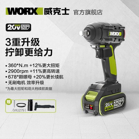 Бесщеточный электрический гаечный ключ Vickers 20 В WU279 (4,0 двойной электрический) с высоким крутящим моментом, ударный гайковерт с ветровой пушкой, инструмент с перезаряжаемой литиевой батареей WORX
