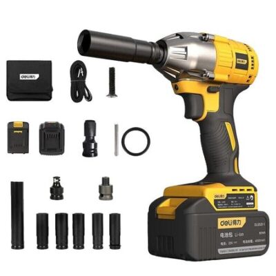 Бесщеточный перезаряжаемый ударный гайковерт DeLI для авторемонта, электрическая ветровая пушка с высоким крутящим моментом, двойной аккумулятор, DL6532
