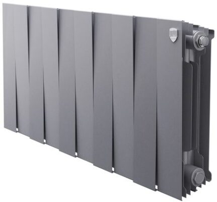 Royal Thermo (Роял Термо) PianoForte 300 Silver Satin — 10 секц. это биметаллический радиатор отопления, который идеально впишется в любйо современный интерьер. Угол наклона секций чередуется, создавая необычную геометрию прибора и в то же время повышает его теплоотдачу. Радиатор состоит из 10 секций, подключение к трубам осуществлено сбоку.