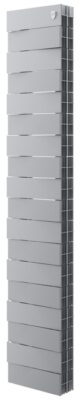 Royal Thermo (Роял Термо) PianoForte Tower 200 Silver Satin — 18 секц. представляет собой биметаллический вертикальный радиатор, межосевое расстояние в котором составляет 200 мм. В конструкции модели имеется 22 секции, причем угол их наклона чередуется, тем самым повышая коэффициент теплоотдачи. Цвет серый.