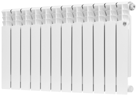 Биметаллический радиатор Royal Thermo (Роял Термо) Vittoria 2.0 500 — 12 секц. предназначен для настенного размещения в любых бытовых помещениях подходящих по площади (до 22 квадратных метров). Полностью стальной закладной элемент сделан из углеродистой стали с высокими показателями прочности и коррозионной стойкости.