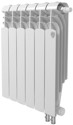 Биметаллический радиатор Royal Thermo (Роял Термо) Vittoria Super 500 VDR80 — 5 секц. подойдет для включения в систему водяного отопления (центральную или автономную). Модель обладает высоким коэффициентом теплоотдачи, что позволяет ей эффективно прогревать обслуживаемое помещение. Цвет радиатора белый.