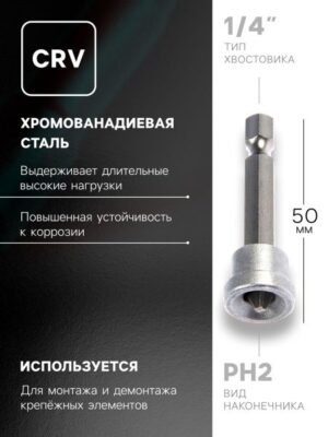 Бита с ограничителем ТУНДРА, для гипсокартона, сталь CrV, PH2 х 50 мм. Бита с ограничителями марки TUNDRA предназначена для монтажа и демонтажа крепежных изделий, мягких поверхностей и гипсокартона. Бита выполнена из высококачественной хромованадиевой стали. У биты имеется специальный ограничитель, который помогает контролировать глубину вкручивания.