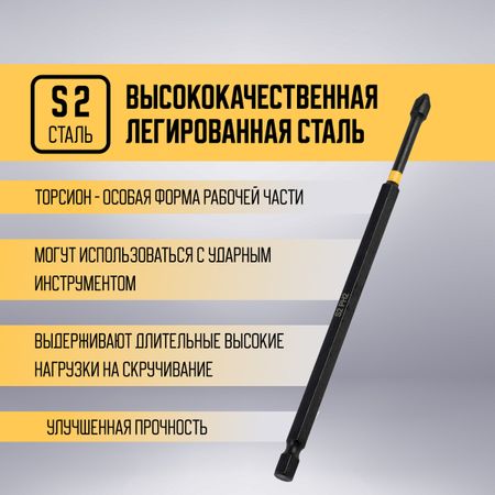Бита ТУНДРА ПРОФИ, Torsion, сталь S2, PH2 х 150 мм, пластиковый кейс по 10 шт.. Набор бит с типом наконечника PH2 и длиной 150 мм — надежный инструмент для профессионалов. Торсионный механизм и сталь S2 обеспечивают долговечность и удобство использования. <b> Особенности</b> <ul> <li> Сталь S2 для прочности и долговечности.</li> <li> Торсионный механизм для защиты от повреждений.</li> <li> Универсальный хвостовик 1/4" для совместимости с различными инструментами.</li> <li> Пластиковый кейс для удобного хранения и защиты 10 бит.</li> </ul> <b> Преимущества использования</b> Биты с типом PH2 обеспечивают высокую производительность и надежность в работе. Торсионный механизм предотвращает повреждение бит и крепежа, что делает их идеальными для интенсивного использования. Пластиковый кейс упрощает хранение и транспортировку, сохраняя биты в отличном состоянии.