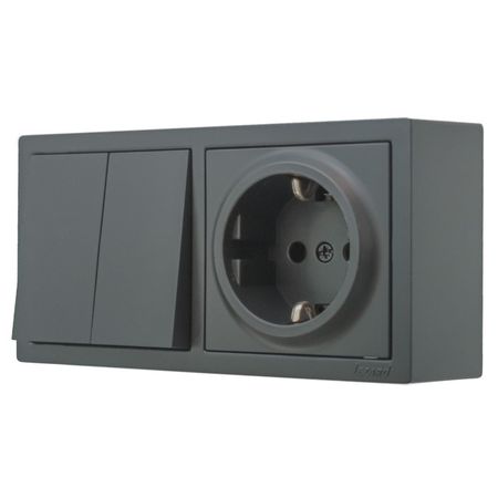 Главная » Строительство и ремонт блок выключатель 2-клавишный и розетка с/з LEZARD Leto графит Просмотров 7 Серия: Leto Количество клавиш: 2 Заземление: да Цвет: графит Индикация: нет Цвет индикации:нет LEZARD