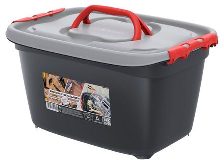 "Унибокс с вкладышем 24л. Предназначен для инструментов и рыболовных снастей. Унибокс изготовлен из прочного и морозостойкого полипропилена. Крышка бокса плотно фиксируется защелками с 2-х сторон, ручки на крышке можно сложить, вкладыш разделен на секции. Унибокс отлично подойдет для хранения ручных инструментов, отвёрток и всего, что может пригодиться в доме. Во вкладыше удобно разместить болты и шурупы. Размер бокса: 46,834,225,6см (Д*Ш*В) Цвет: серый. Максимальная нагрузка -25 кг, общий объем в литрах -24л.,""содержание вторичного сырья, в процентах -30%"