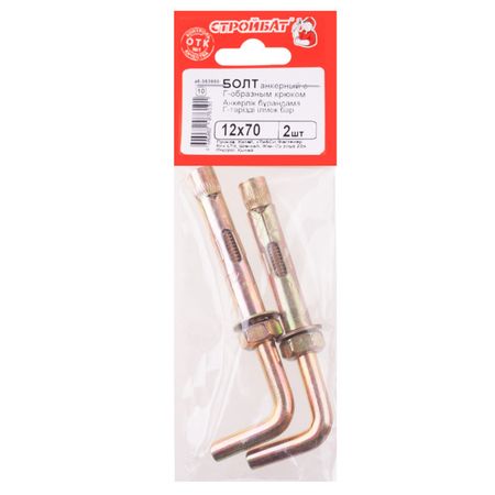 Главная » Строительство и ремонт болт анкерный оцинкованный с Г-образным крюком 12×70 2шт Просмотров 8 Размер: 12х70 мм Количество в упаковке: 2 шт Материал: сталь СТРОЙБАТ