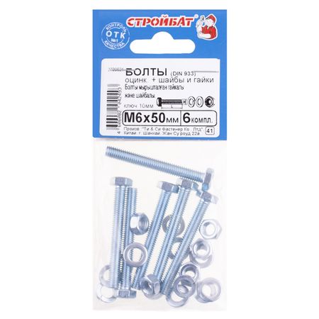Главная » Строительство и ремонт болт DIN933 М6×50 + гайка + шайба + гровер 6шт Просмотров 4 Диаметр: 6 мм Длина: 50 мм Материал: сталь оцинкованная Количество в упаковке: 6 шт Комплектация: болт DIN933, гайка DIN934, шайба DIN125А, шайба DIN127 СТРОЙБАТ