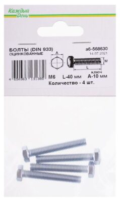 Болт Каждый день Din 933м 6×40 оцинкованный, 4 шт
