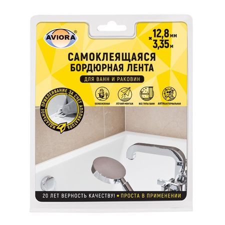 Бордюрная лента используется для герметизации стыков, для декорирования ванных комнат, душевых кабин, джакузи, кухонь. На ленту нанесен специальный бутиловый клей, который содержит добавки, препятствующие образованию грибка и плесени. Клеевой состав нанесен по всей ширине ленты, что позволяет исключить ее преждевременное отслаивание и возможные протечки.