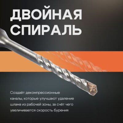Бур по бетону ТУНДРА, двойная спираль, SDS-plus, 5.5 х 110 мм. Бур по бетону ТУНДРА предназначен для совместных работ с перфоратором с системой крепления SDS-plus. Бур применяется для бурения отверстий в таких материалах, как: бетон, кирпич, камень, гранит и шлакобетонных блоках. Двойная спираль обеспечит отвод шлаков во время бурения.