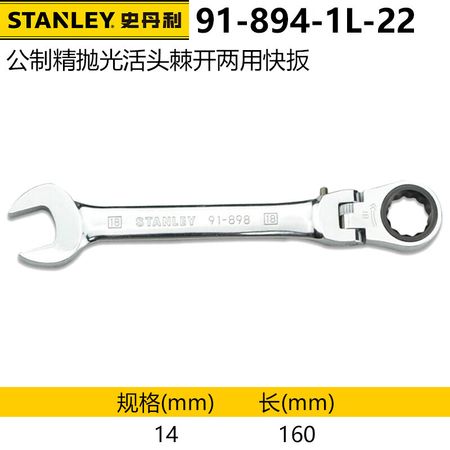 Быстродействующий ключ двойного назначения с трещоткой Stanley из хромованадиевой стали, полированная, метрическая, 14 мм 91-894-1L-22 one
