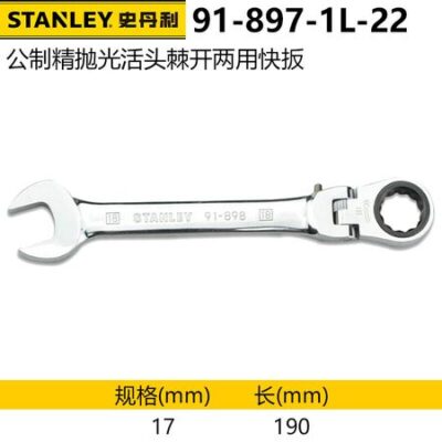 Быстродействующий ключ двойного назначения с трещоткой Stanley из хромованадиевой стали, полированная, метрическая 17 мм 91-897-1L-22 one
