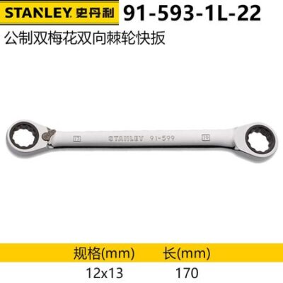 Быстродействующий ключ Stanley с двусторонней трещоткой из хромованадиевой стали, метрический, 12×13 мм, двусторонний ключ 91-593-1L-22 один