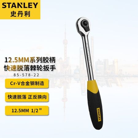 Быстроразъемный храповой ключ Stanley серии 12,5 мм с резиновой ручкой, многофункциональный быстрый ключ вперед и назад, большой торцовый ключ, инструмент для ремонта автомобилей 85-578-22