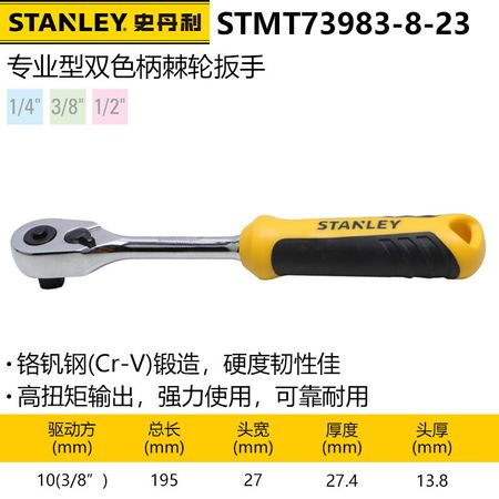 Быстрый ключ для ремонта автомобилей Stanley, двусторонний гаечный ключ с храповым механизмом, ручной ключ STMT73983-8-23