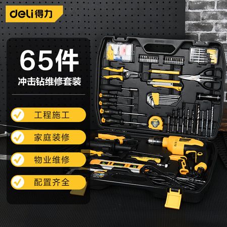 Бытовой многофункциональный ящик для инструментов Deli, набор электрических дрелей, 65 предметов, комплексный ремонтный набор DL5966