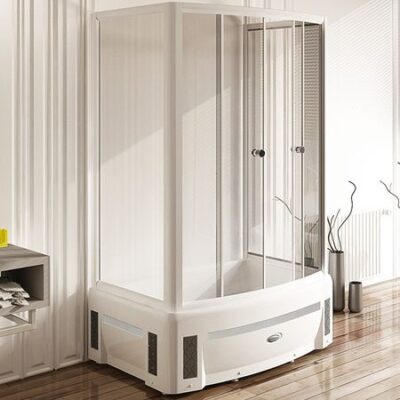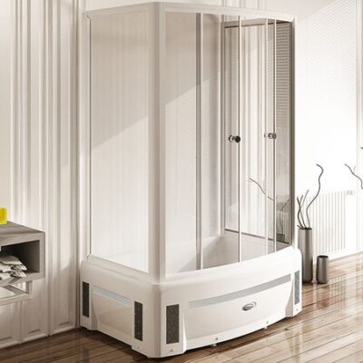 Душевой бокс Radomir Калифорния 2 155×155 1-04-1-0-5-0790 с баней, с раздвижными дверцами с прозрачным стеклом и белым профилем отлично впишется в